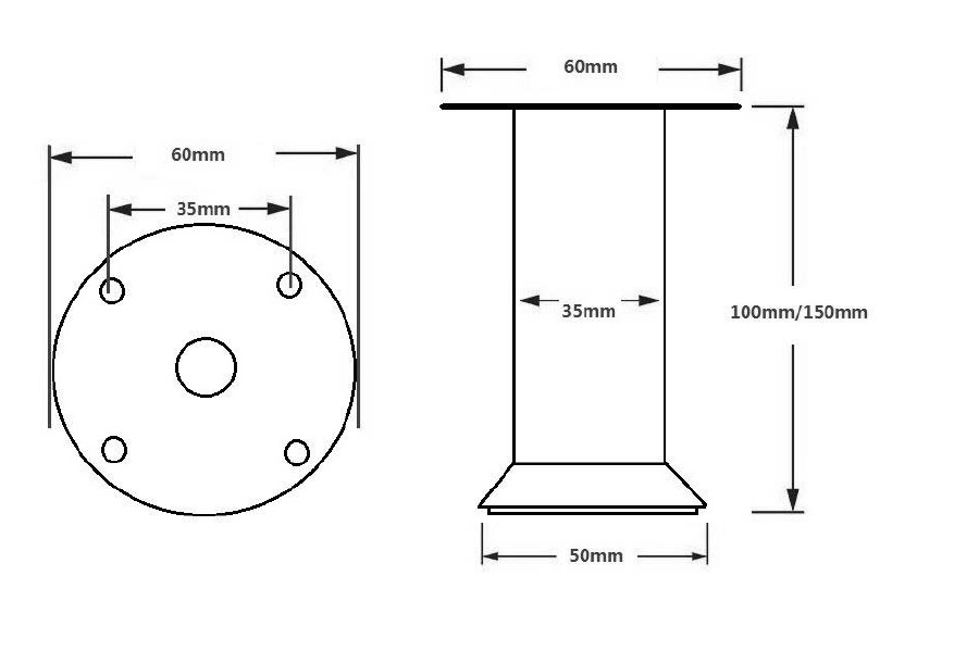 Metal Leg "Siri", ø35x150mm, Matt Black, W/Plate ø60mm, cc: 35mm, W/Adjustable Glide , 15mm Height Regulation