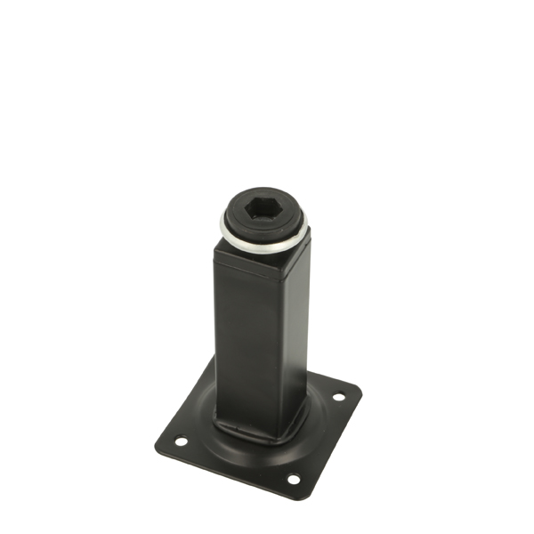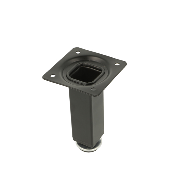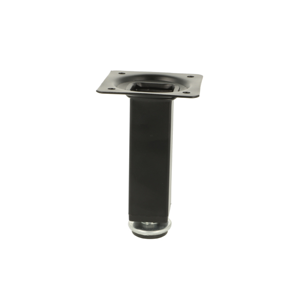 Metal Leg "Vera", 25x25x100mm, Matt Black, W/Plate 60x60mm, cc:44x44mm, W/Adjustable Glide w/Hex Nut, 10mm Height Regulation