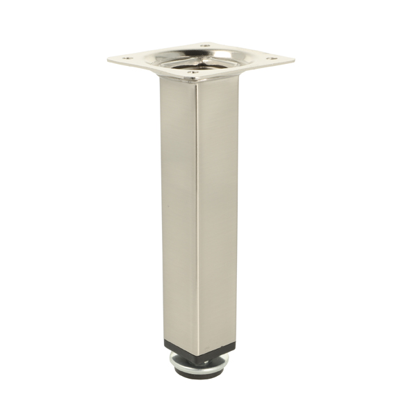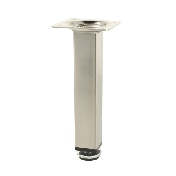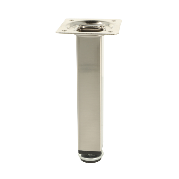 Metal Leg "Vera", 25x25x150mm, SS-Look, W/Plate 60x60mm, cc: 44x44mm, W/Adjustable Glide w/Hex Nut, 10mm Height Regulation
