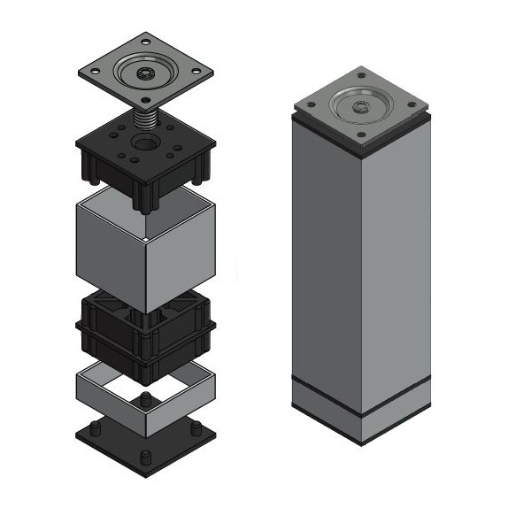 Plastic Top Plug F/Alu Leg "Niko", 40x40mm, W/Pl 39x39x2mm, cc:29x29mm