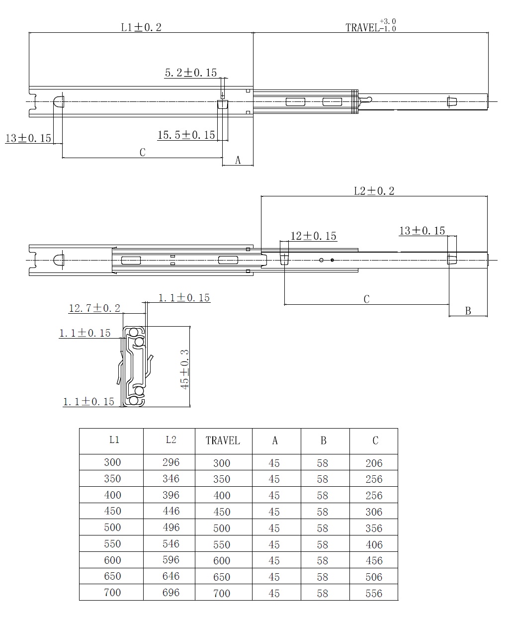 Drawer Slide ME4500, 600mm Bayonet Fix, D=456mm, Black ZP