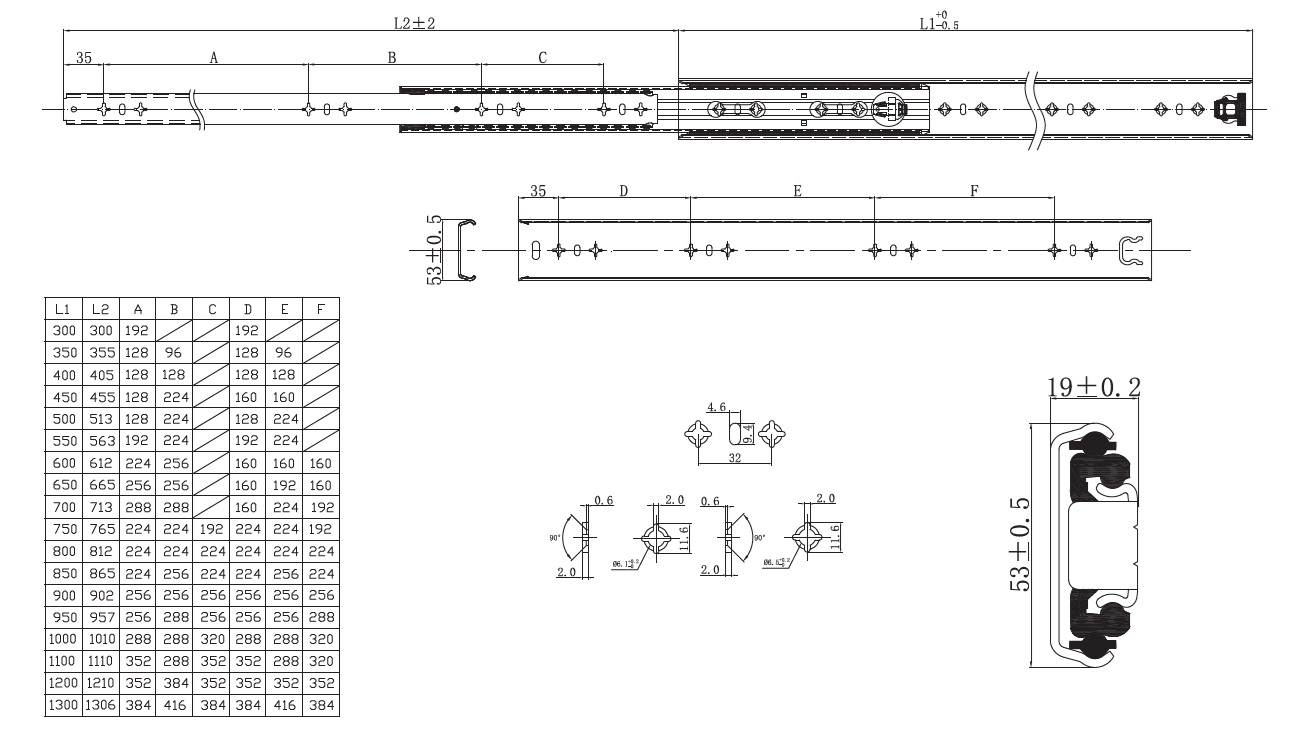 Drawer Slide HD5300, 500mm Full Extension, Zinc Plated,Heavy Duty, Load Capacity 110kg