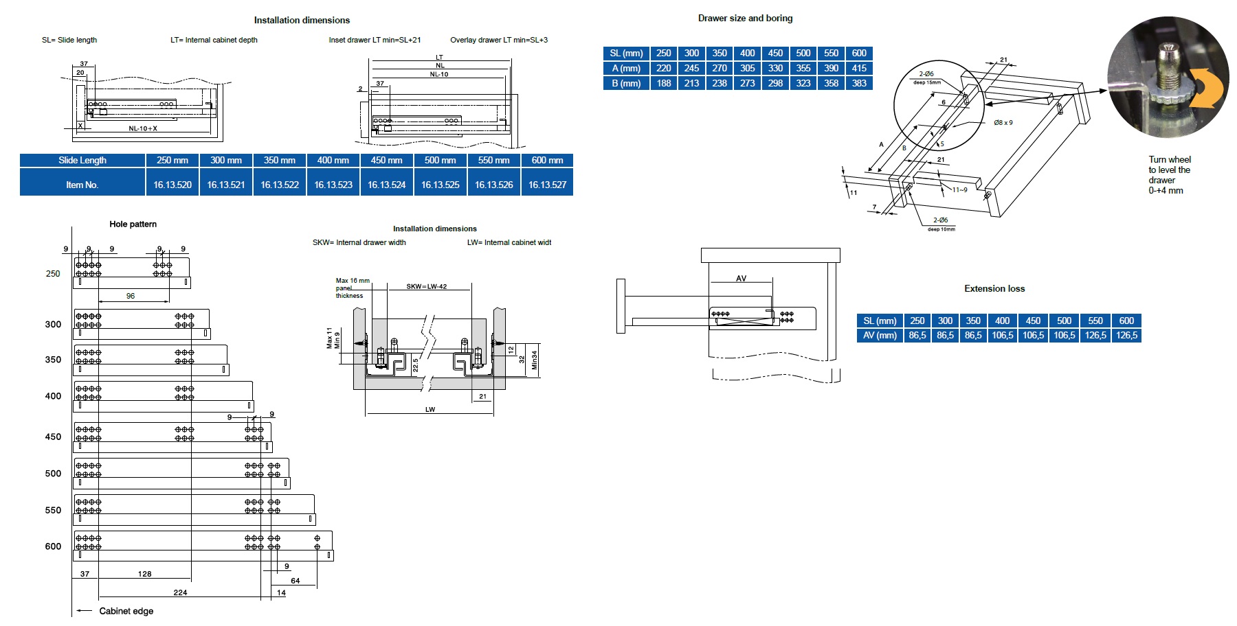 Invisible Semi Ext. Slide, Self Closing, BZP, 350mm W/Pre- Mounted Soft Pumps