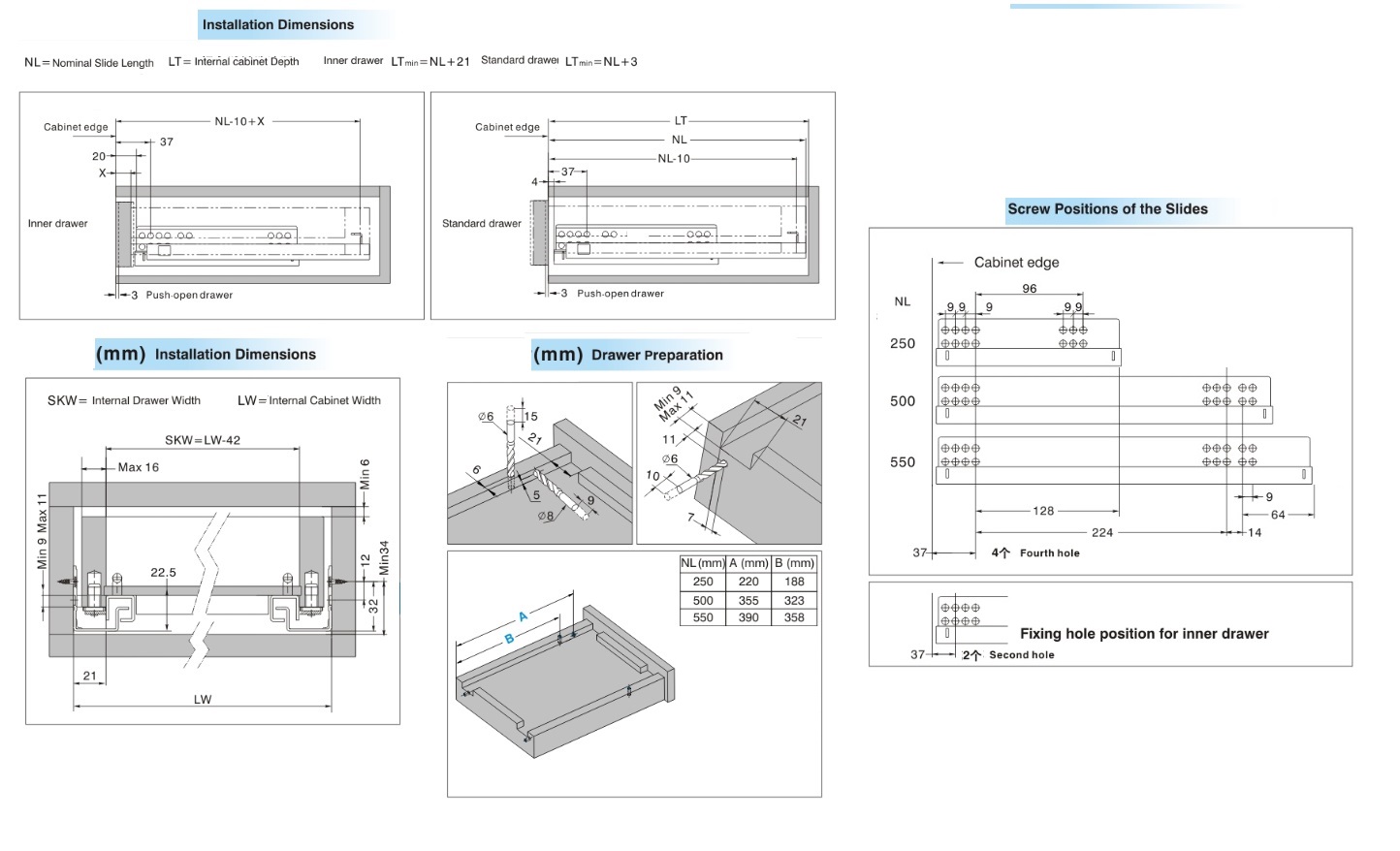 Invisible Semi Extension PTO, 500mm, Pre-Zinc, Max Drawer Width:500mm, Load Capacity:25Kg