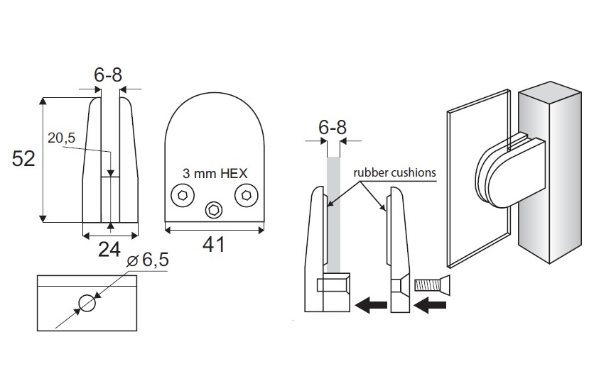 Glass Clamp, "Medium", Zamak, Matt NPL, F/Thickness 6-8mm