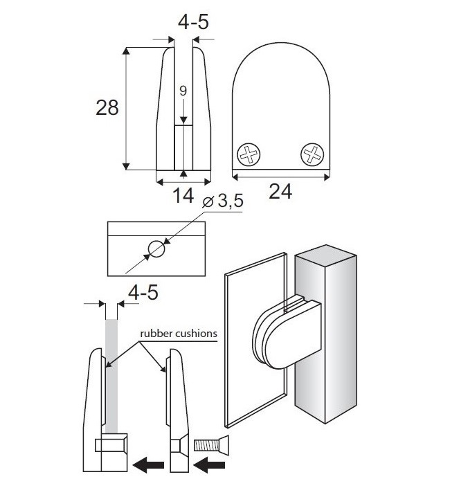 Glass Clamp, "Small", Zamak, Matt NPL,F/Thickness 4-5mm