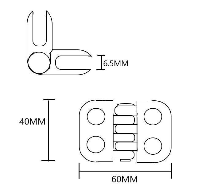 Glass Connector Hinge "Mini", 60x40mm, CPL, 4-5,5mm Glass
