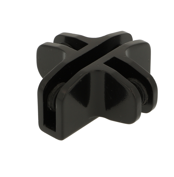 Glass Connector Maxi Closed, 4-Way, 90DG, Black Anodized