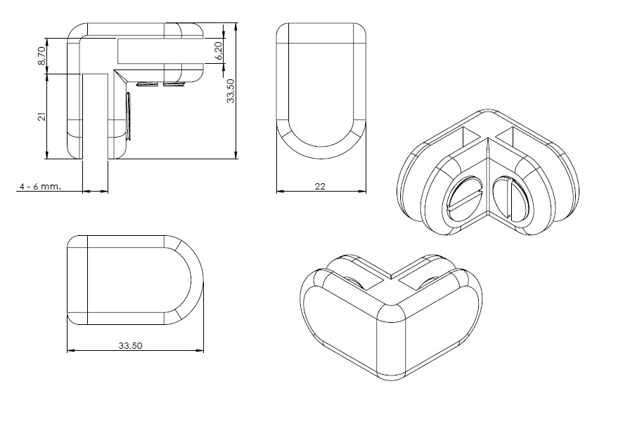 Glass Connector "Mini" 2-Way, 90 Degree, Black Anodized