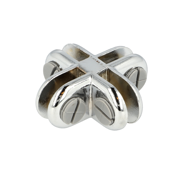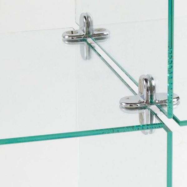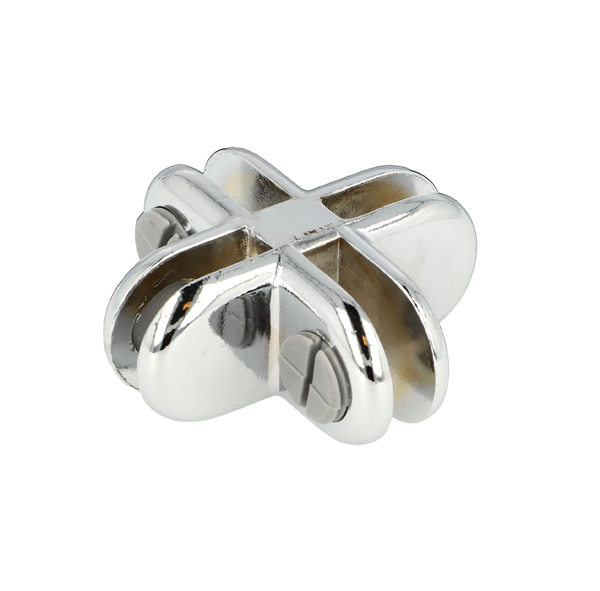 Glass Connector "Mini" 4-Way, 90 Degree, Chrome Plated