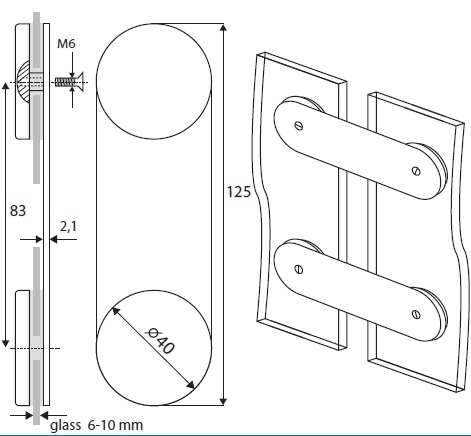 Glass/Glass Connector 180DG, Brass, CPL, 125x40mm