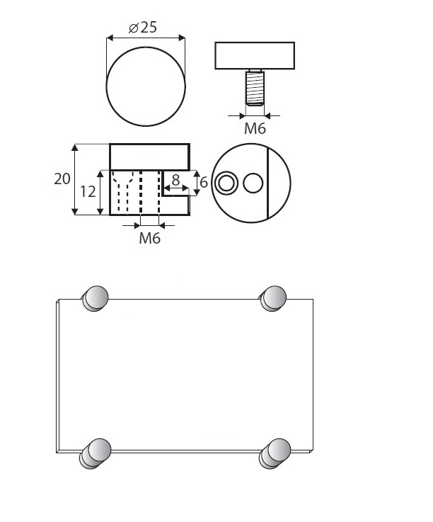 Sign Board Holder ø25mm Brass, Chrome Plated