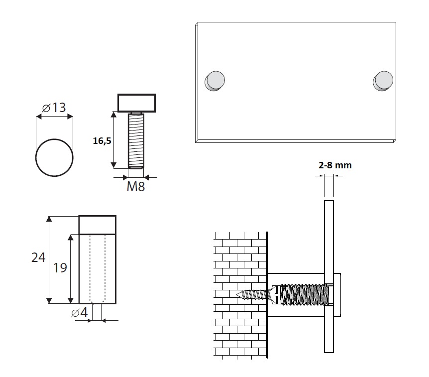 Sign Board Screw ø13x19mm, Alu, Blue, M8, W/2 Transparent Washers