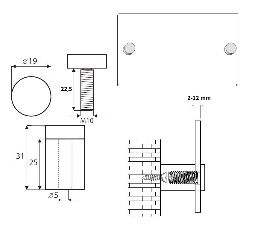 Sign Board Screw ø19x25mm, Brass, CPL, W/2 Transparent Washers