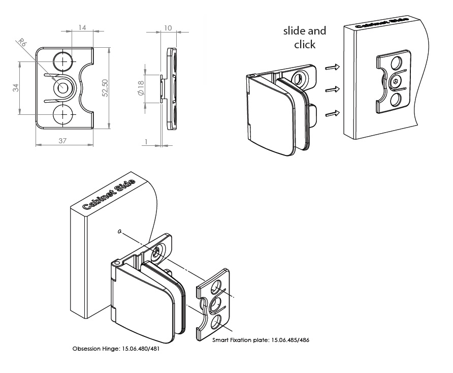 Mounting Plate "Smart-Fix" F/Obsession Hinge, Brass, CPL,