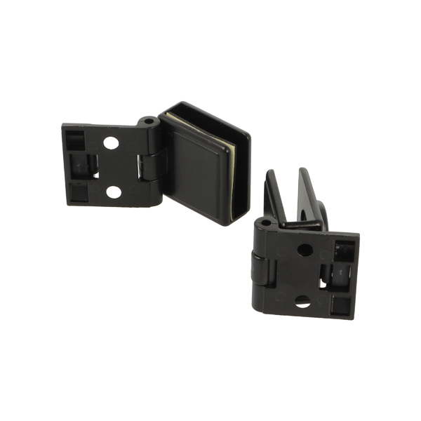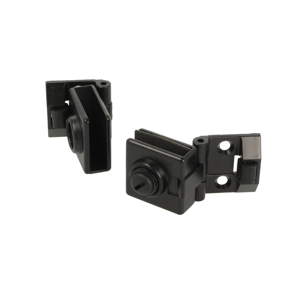 Glass Door Hinge No. A-11, Black Anodized, R+L, With Pad & Black Plastic Screw