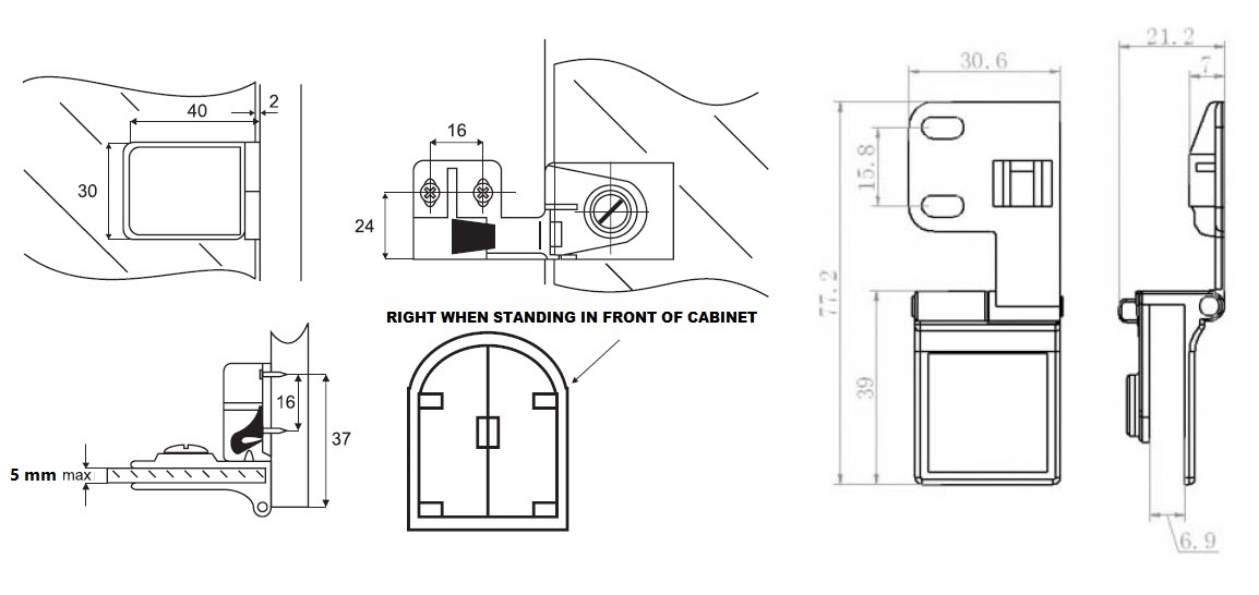 Glass Door Hinge No C-13 Zamak, Chrome Plated, Right