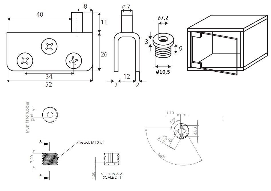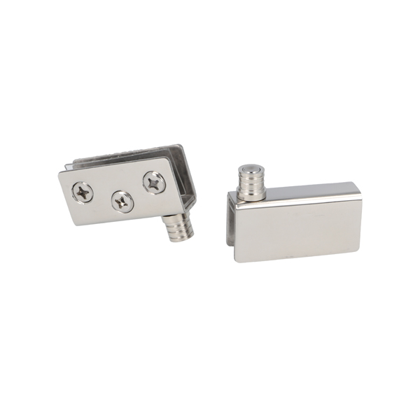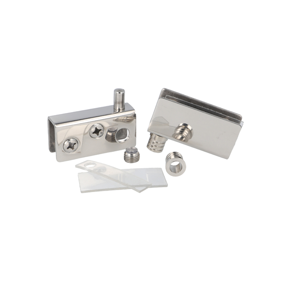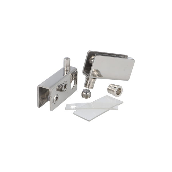 Glass Pivot Hinge "M", 52x26x2mm, 8mm Glass,SS-304 Polished, W/ø10x9mm Brass Bushing & Screws W/Soft Tip, All SS-look