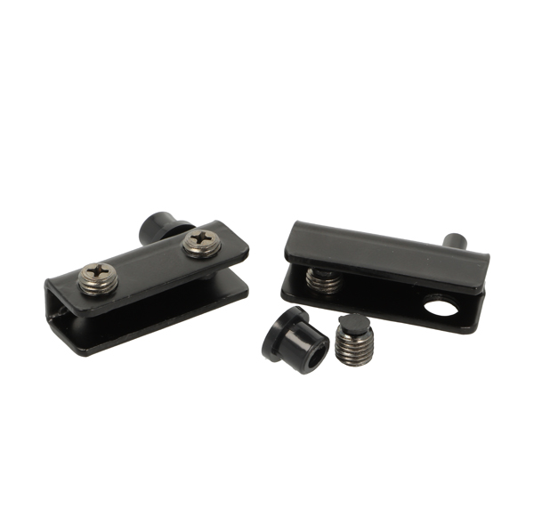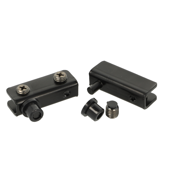 Glass Pivot Hinge No. 11.561, 9mm,Black Anodized,L+R,40x15mm F/4-5mm Glass, Metal Screw W/Plastic Tip, ø9 x 7mm Bushing