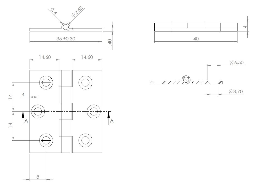 Butt Hinge, 40x35x1,4mm, Brass, Black Finish