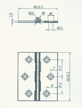 Butt Hinge, 50x40x1,4mm, Brass, Black Finish