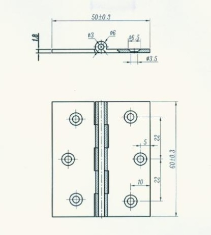 Butt Hinge, 60x50x1,8mm, Brass Sanded, ø3,5mm Holes