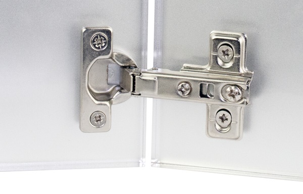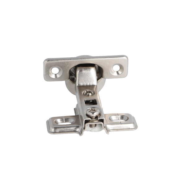 Mini Hinge, Steel, NPL, 98DG, B/09mm Half-Overlay,W/Mounting Plate H:0mm, F/Chipboard Screws, ø26mm Cup cc:38mm - 8mm Cup Height 9,5mm, W/SISO DK Logo In Cup, Slide-On