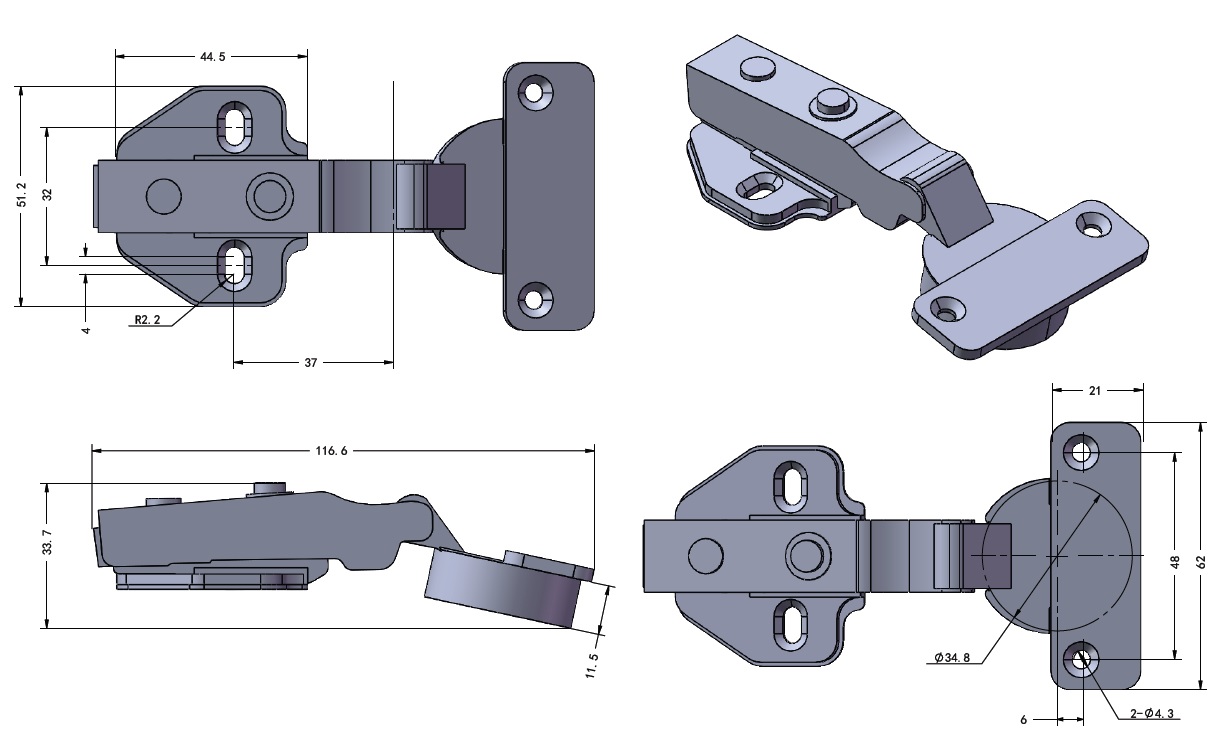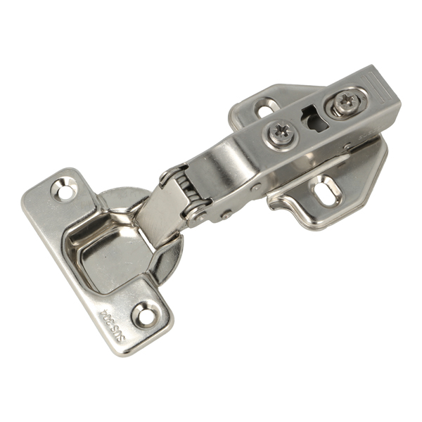 Soft Closing Hinge SS304, "A",ø35mm,Clip-On,H=0,Plate F/Wood Screws, Full-Overlay, 100 Degree,Cup cc.:48mm,Mounting Plate F/Wood Screws, H:0mm,No Name Plate,Hydraulic Plastic Pump