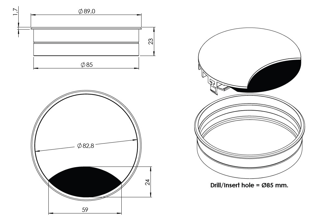 Aluminium Grommet W/Brush, ø85x22mm, Sanded Anodized