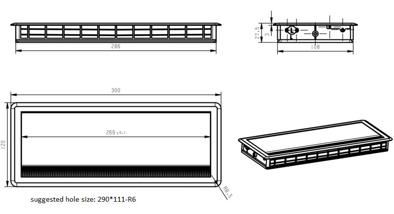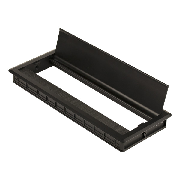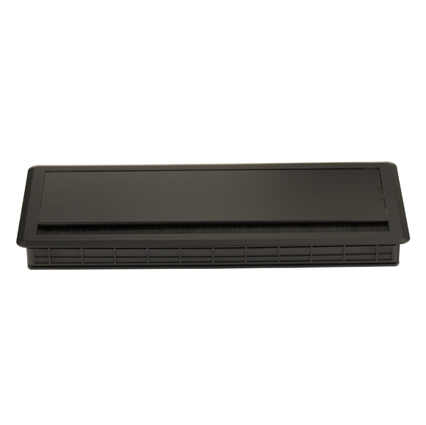 Soft Close Grommet "Mambo" 300x120x27,5mm, Black (RAL9005) ABS Frame,Alu. Lid W/Brush.Suggested Hole Cutting 290x111mm