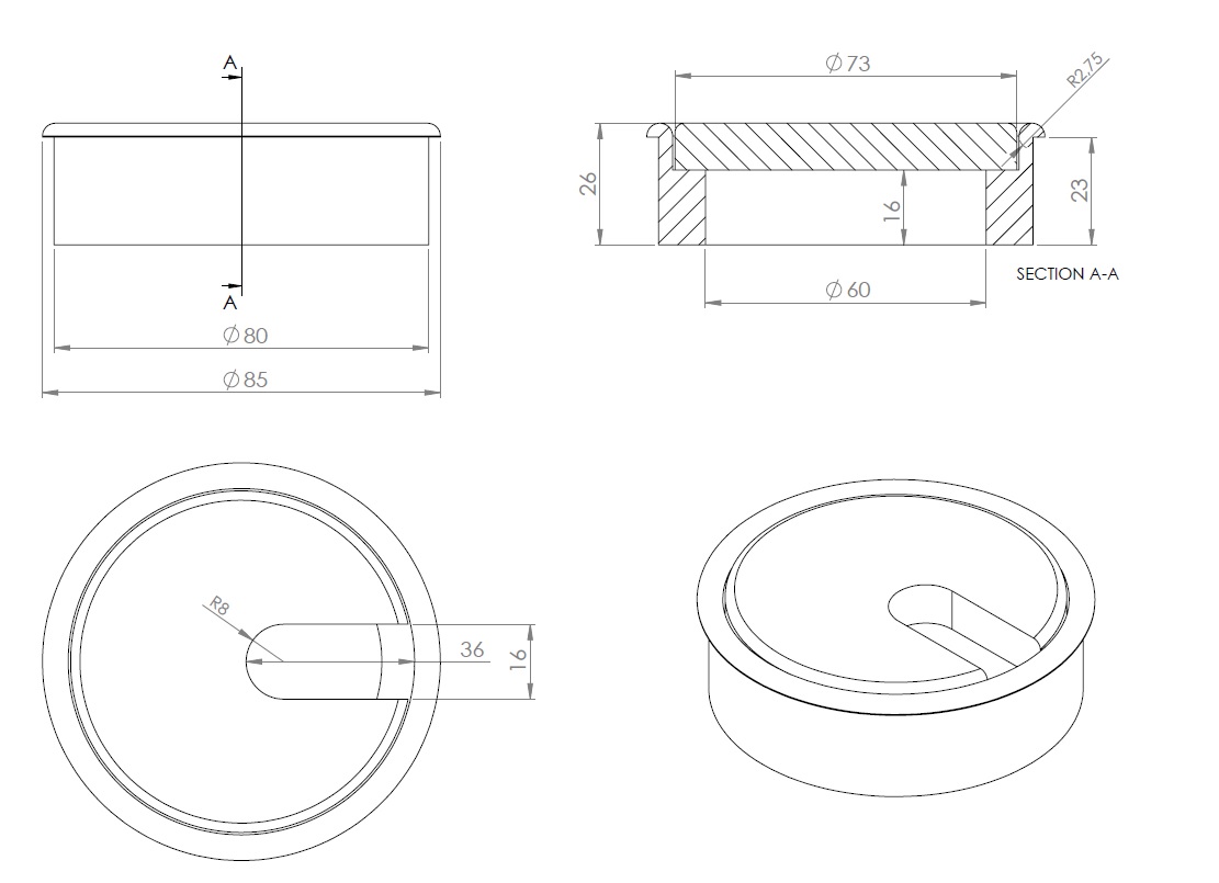 Wooden Grommet ø80x23mm, Oak Wood, W/Clear Laquer