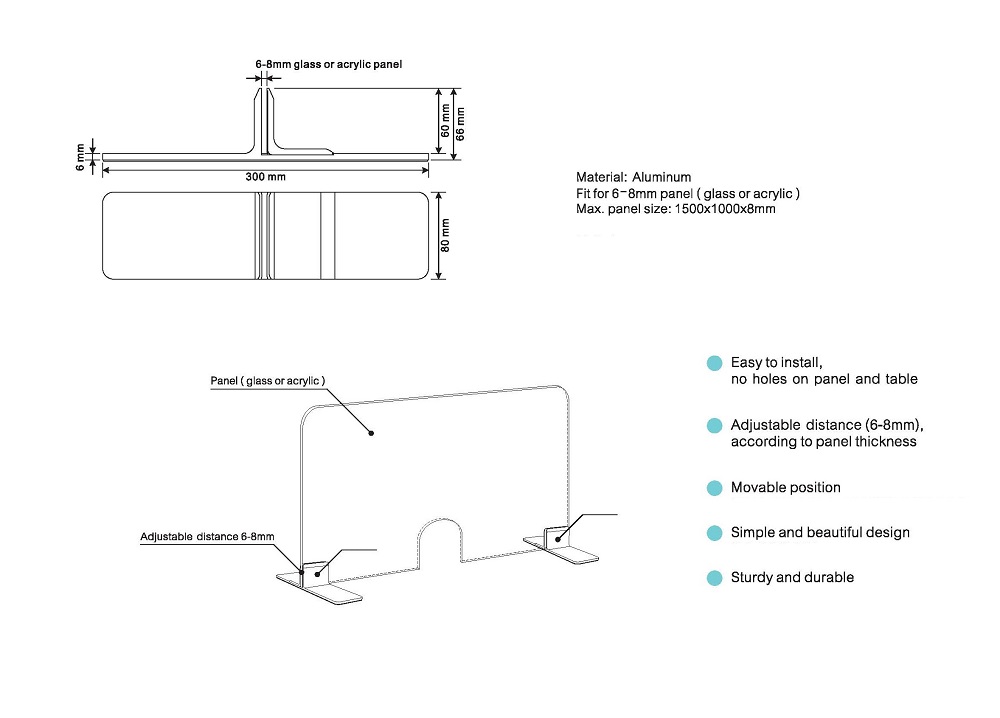 Partition Panel Support Clamp, Alu, Black Matt, F/6-8mm Panel Thickness. Max Panel Size 1500x1000x8mm (L/H/T)