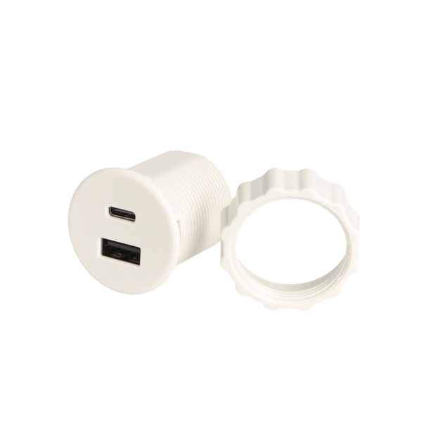 USB Charger (C+A), Round ø35mm, White ABS, W/Euro Plug & 1,5 Meter Cable