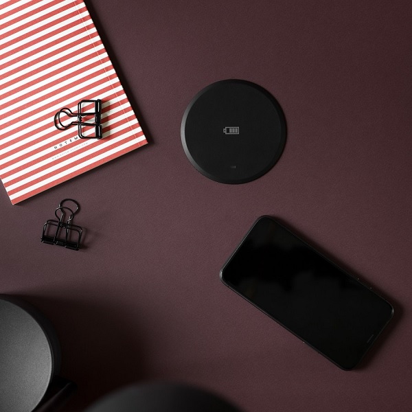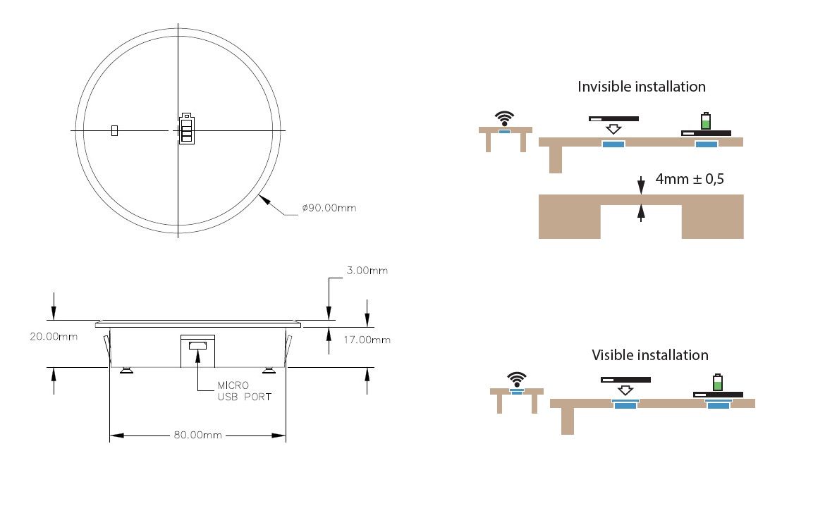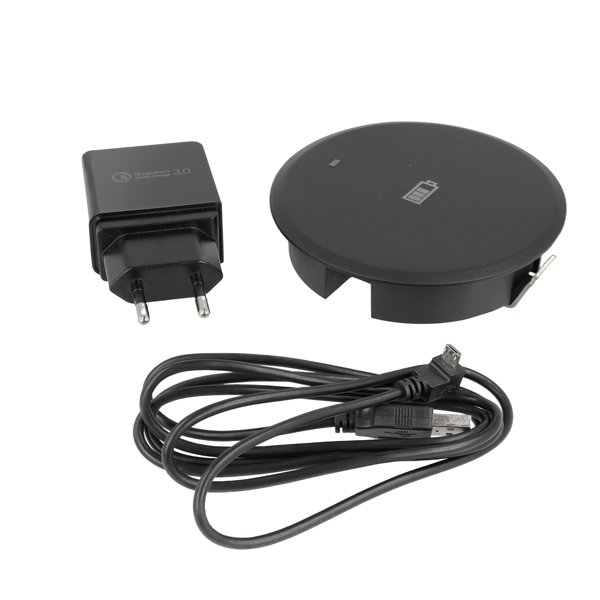 Wireless Charger Grommet, 15W, ø80mm Drilling, Black ABS, W/ 1,5 Mtr. Cable W/USB C Plug & Power Adaptor,May be installed Visible or Invisible by removing the Top Lid
