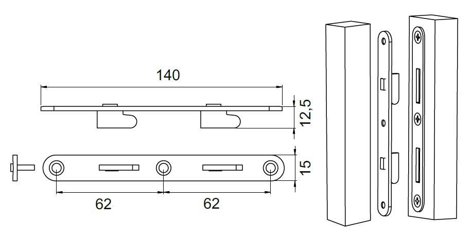 Bed Fitting No. 3704, 140mm, Steel BZP, Round Corners, 1 Set = 4 Male + 4 Female