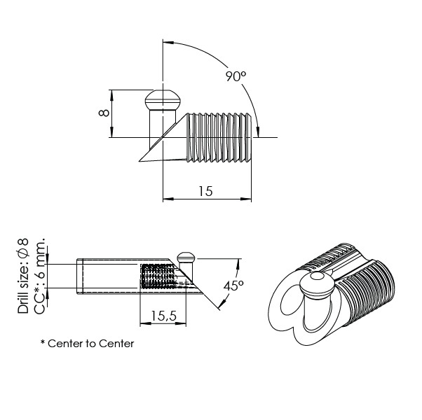 Dowel For Keyhole KD System "Fixi 45DG" - White PC