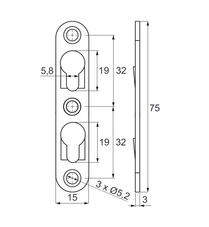 Keyhole Fixture No. 0724, Twin Holes, Steel, Bright Zinc Pl.