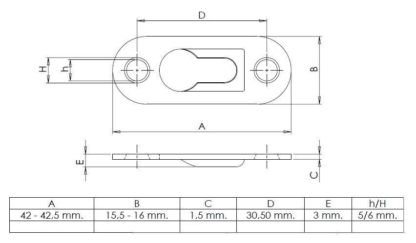 Keyhole Fixture, Single Hole, 42x16x1.5mm, White Zinc Plated
