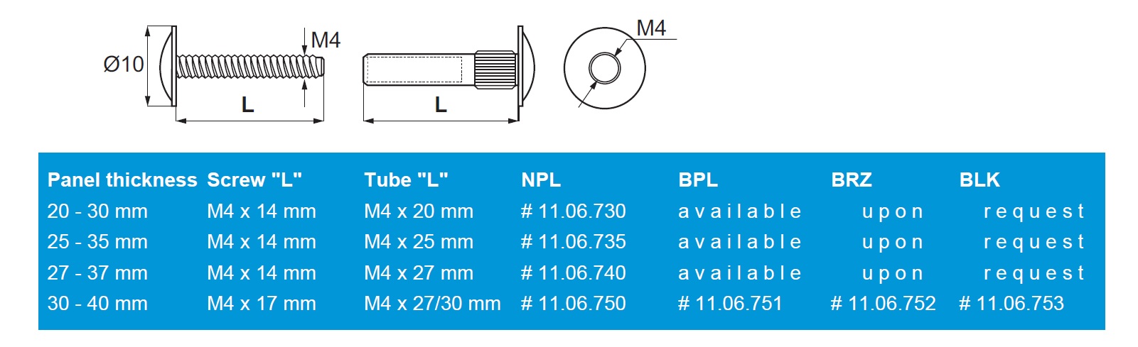 Connecting Screw, 30-40mm, Bore 5mm, M4, Steel Brass Pl.