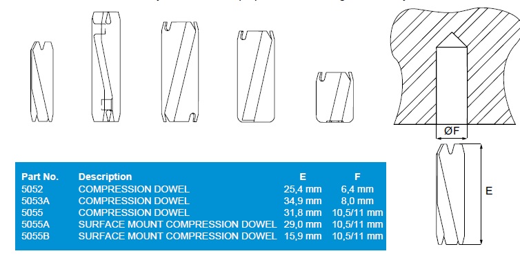 Compression Dowel #5052A "INVISIO", 28mm Length, Bore 6.4mm