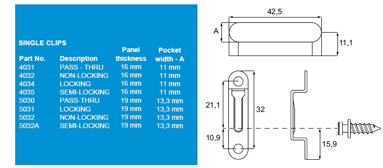 "INVISIO" Single Clip #5031, F/19mm Panel, Full Locking