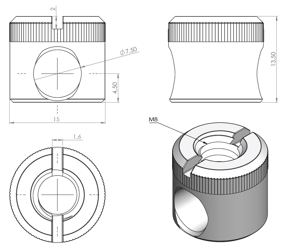 Cylinder F/KD System S, ø15 x 13,5mm, Steel, BZP,Knurled Top