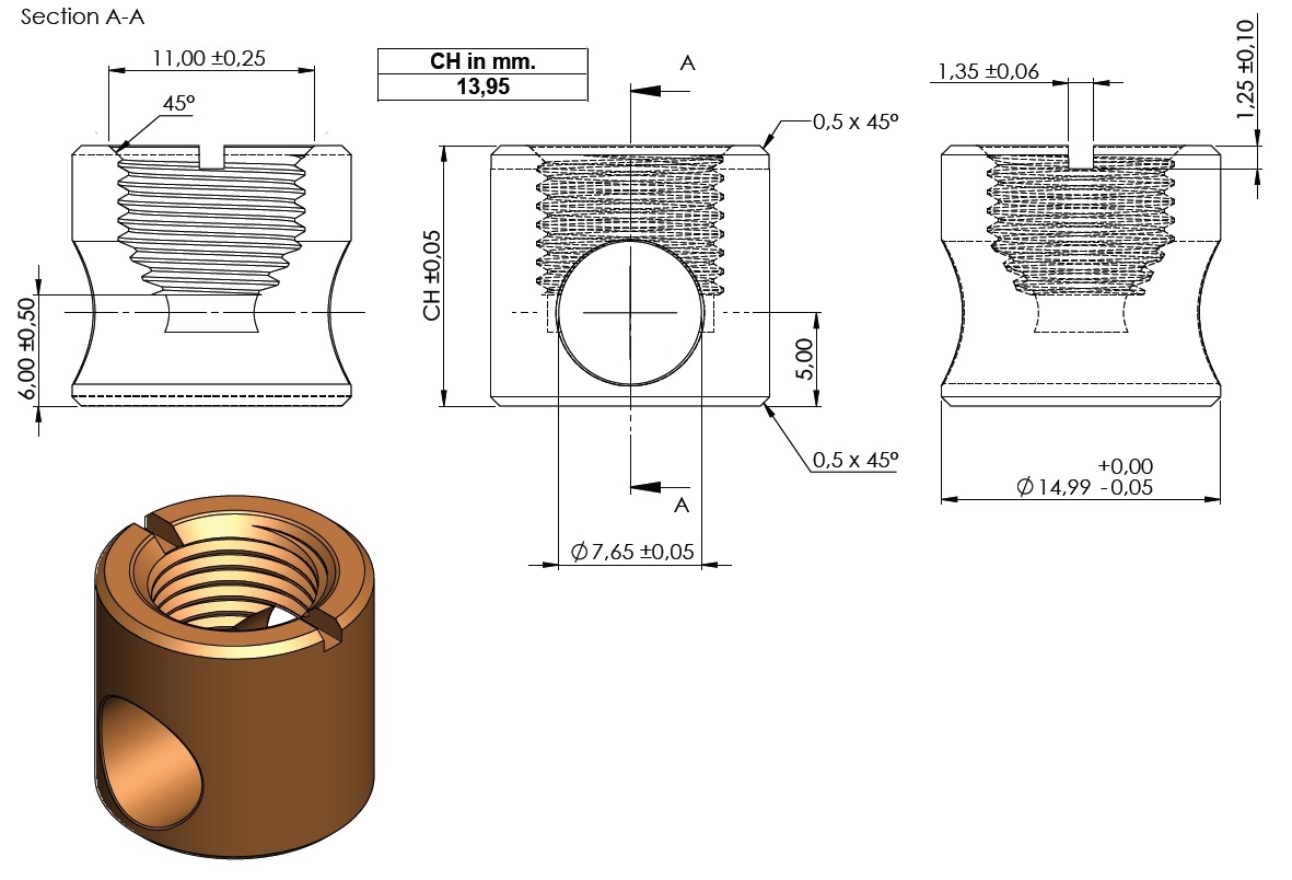 Cylinder F/KD System S, ø15 x 14mm, Steel Bright Zinc Pl