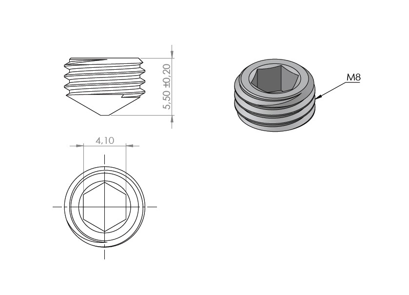 Grub Screw F/KD System S (1511), 8Mb x 5,5mm, W/4mm Hex, BZP
