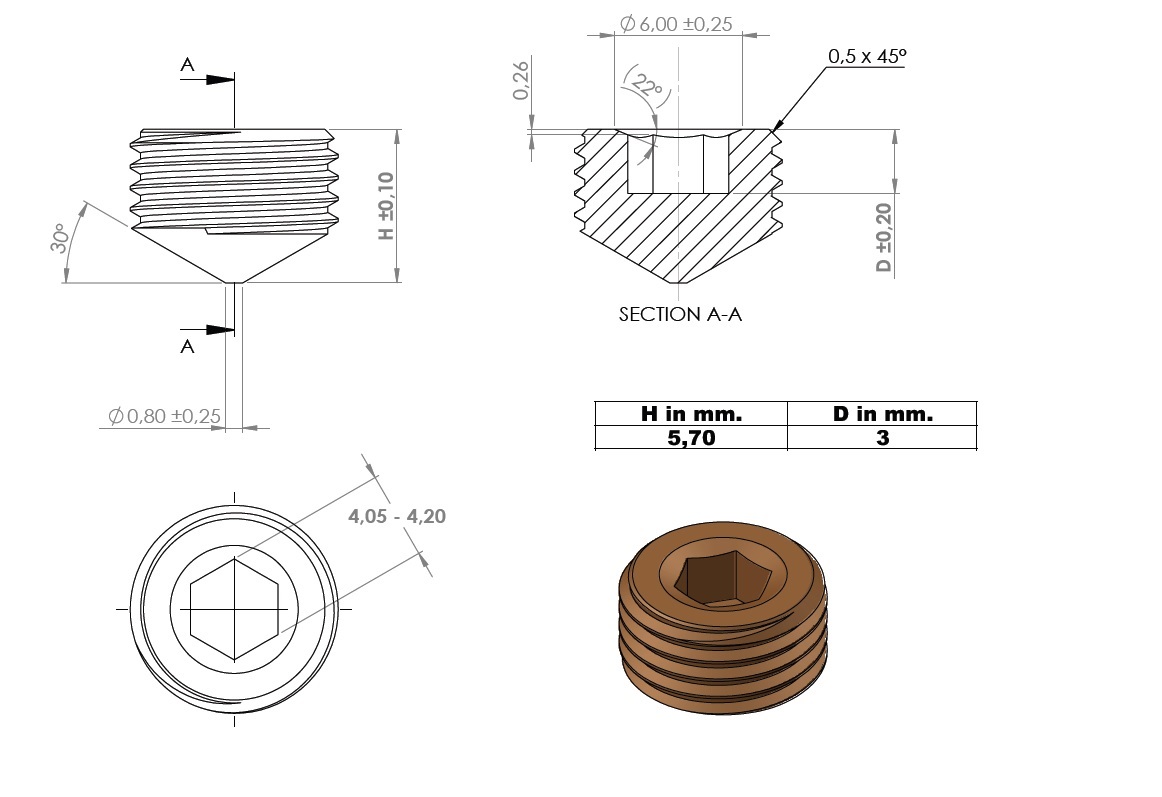 Grub Screw F/KD System S (1512), 10Mb x 6mm, W/4mm Hex, BRZ