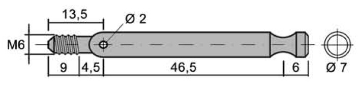 Mitre Dowel Pin F/KD System S, Bore 46mm, M6, Steel BZP