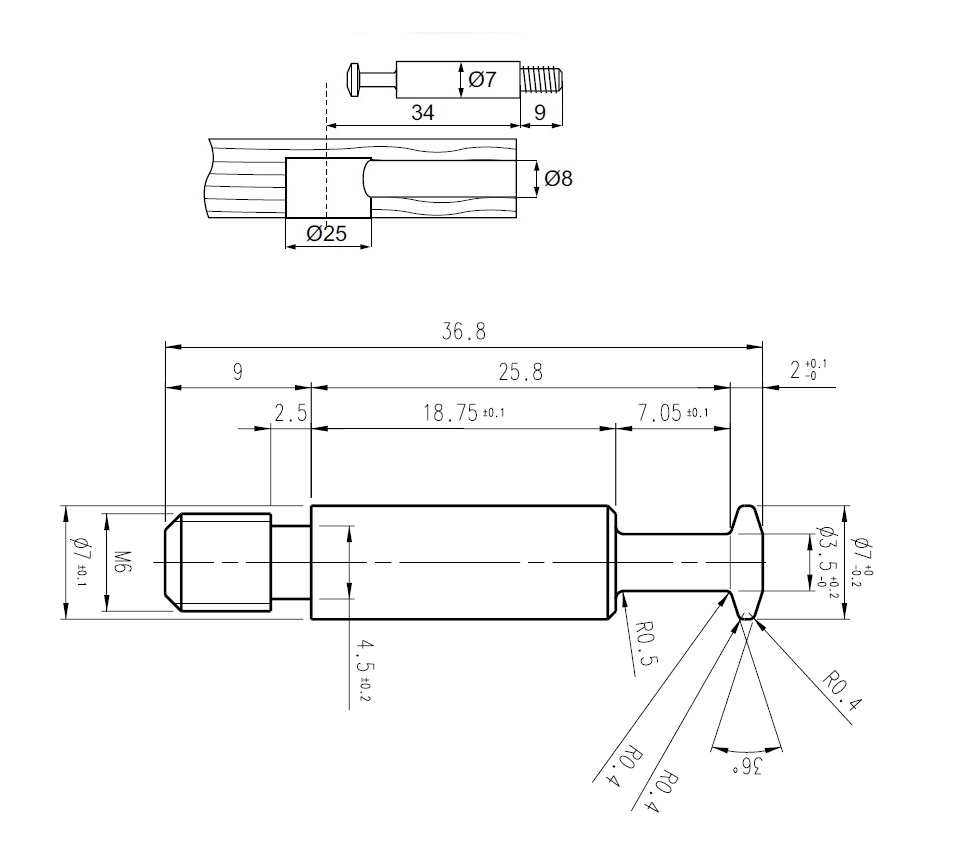 Medial Fix Dowel Steel Zinc Plated, 34mm, M6