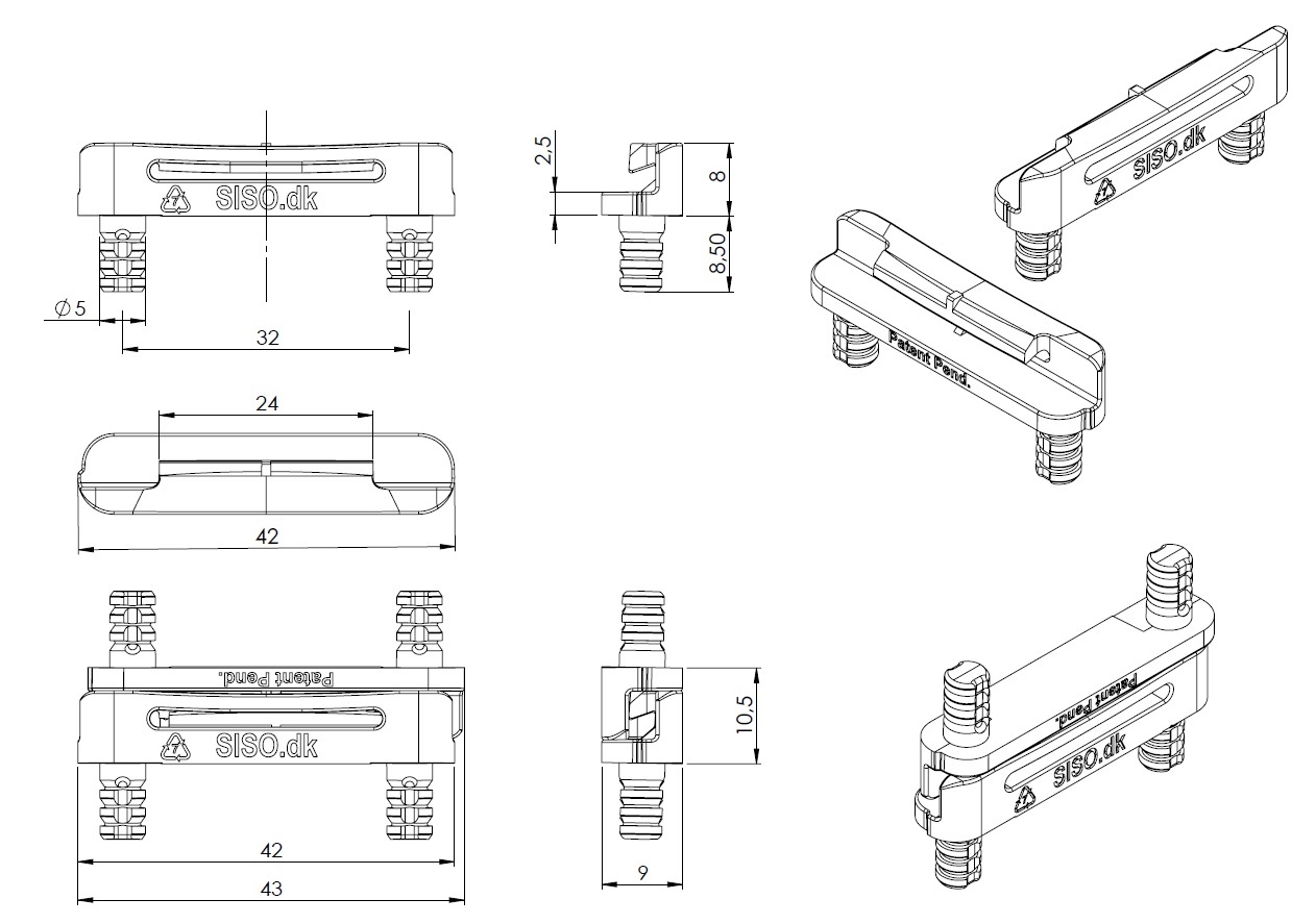 Slide-on Connector "Maki", W/ø5x9mm Dowels, cc: 32mm, Grey PC, Universal