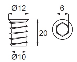 Screw-In Bushing, Right, 1/4 x 20mm, Bore ø8mm, Steel Black