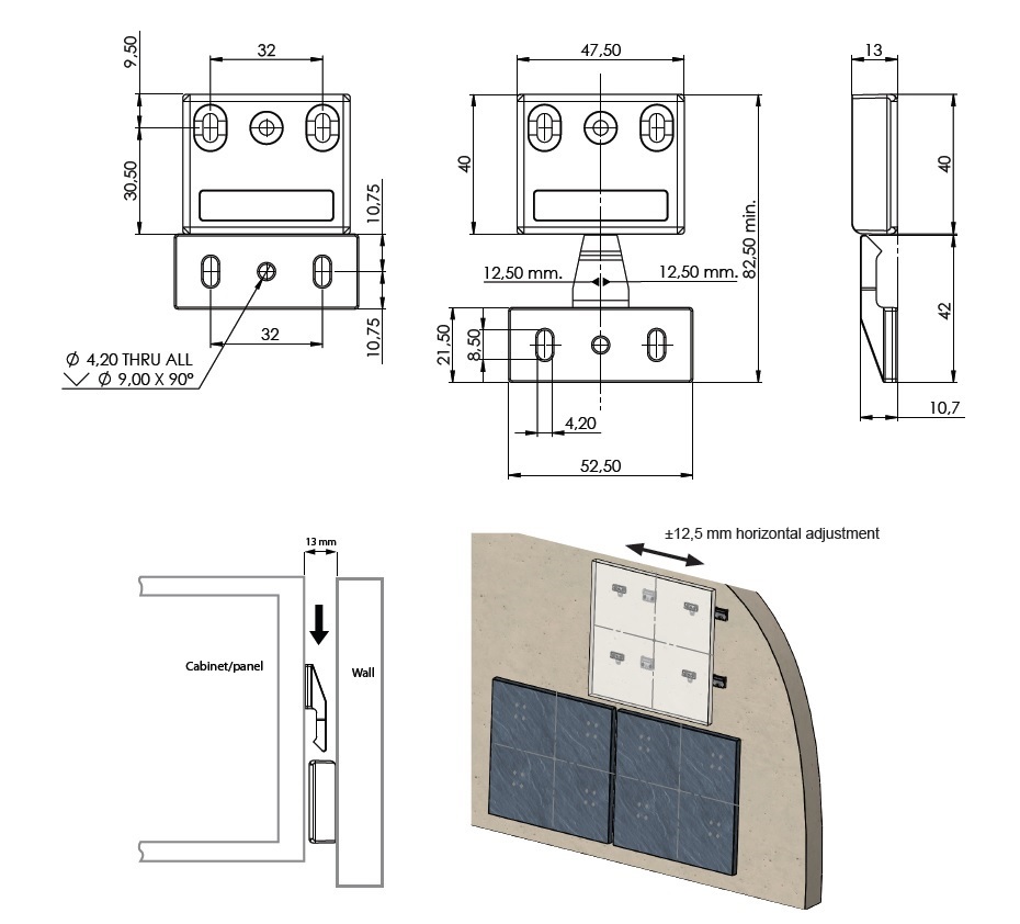 Cabinet Hanger "Cliff", Female Part, Black PC, F/Chipboard Screws, Load Capacity 250 kg. by use of 4 Sets, (NOT FOR SALE IN GERMANY)